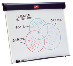 ProductinformatieMagnetisch, minibord - half formaat, papieren bevestigingsstaaf inmetaal en markerhouder, rubberen voetjes,achterste steunbasis, verplaatsbaar, inclusief transporthoes, B1-papierblok en zwarte marker.