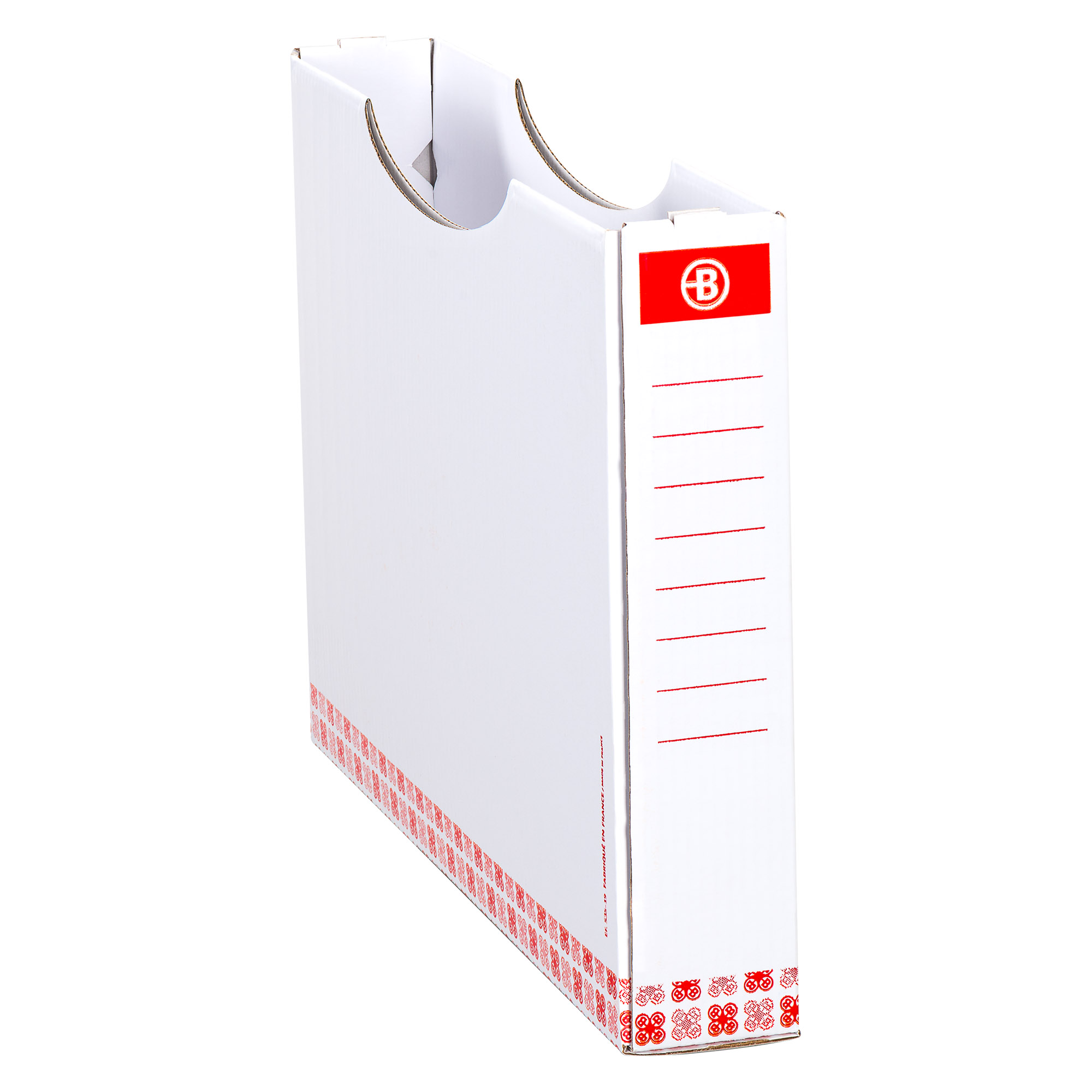 ProductinformatieSimpel te plaatsen op legplanken van uw kasten of rekken. Vernist bordeaux karton met groot indexeringsvermogen. Dikte : 5 cm. Afmetingen: H 22,5, D 33,5 cm. Gedemonteerd geleverd, gemakkelijke montage.