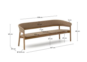 • 3-zitsbank met structuur van massief acaciahout met natuurlijke afwerking.