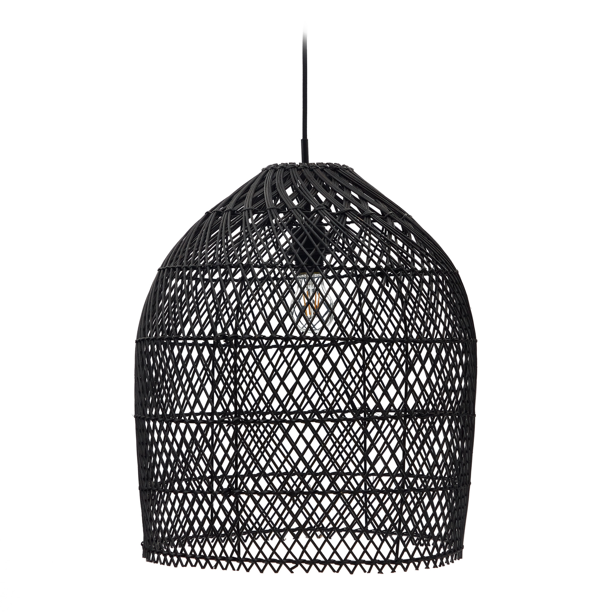 Lampenkap voor plafondlamp van rotan met zwart geschilderde afwerking. 44 cm diameter.