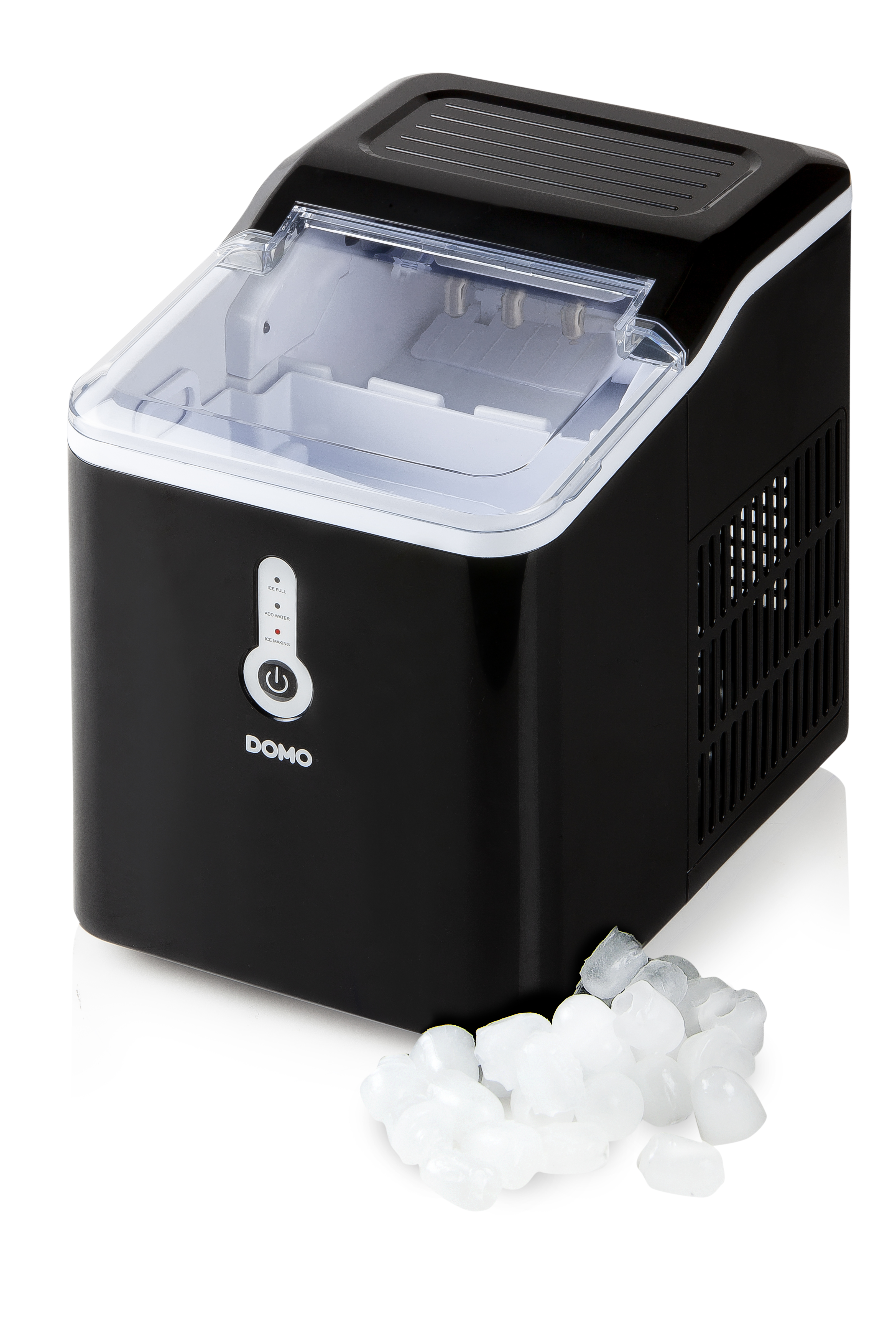 Maak verbazend snel verfrissende ijsblokjes met de ijsblokjesmaker DO9220IB van DOMO. Vul het reservoir van 1,5 l met bronwater en 8 min. later zijn je eerste ijsblokjes klaar. Lekkere cocktail of mocktail, oesters op ijs of je champagne koel leggen? Met de ijsblokjesmaker is het zo gebeurd. Het toestel met ingebouwde compressor kan tot 12 kg ijs produceren in 24 u. De ijsblokjes worden opgevangen in een mandje. Voldoende ijs? Neem het mandje uit het toestel en ledig het toestel via de handige drainageopening. Het gratis receptenboekje geeft je inspiratie voor enkele lekkere mocktails met ijs.