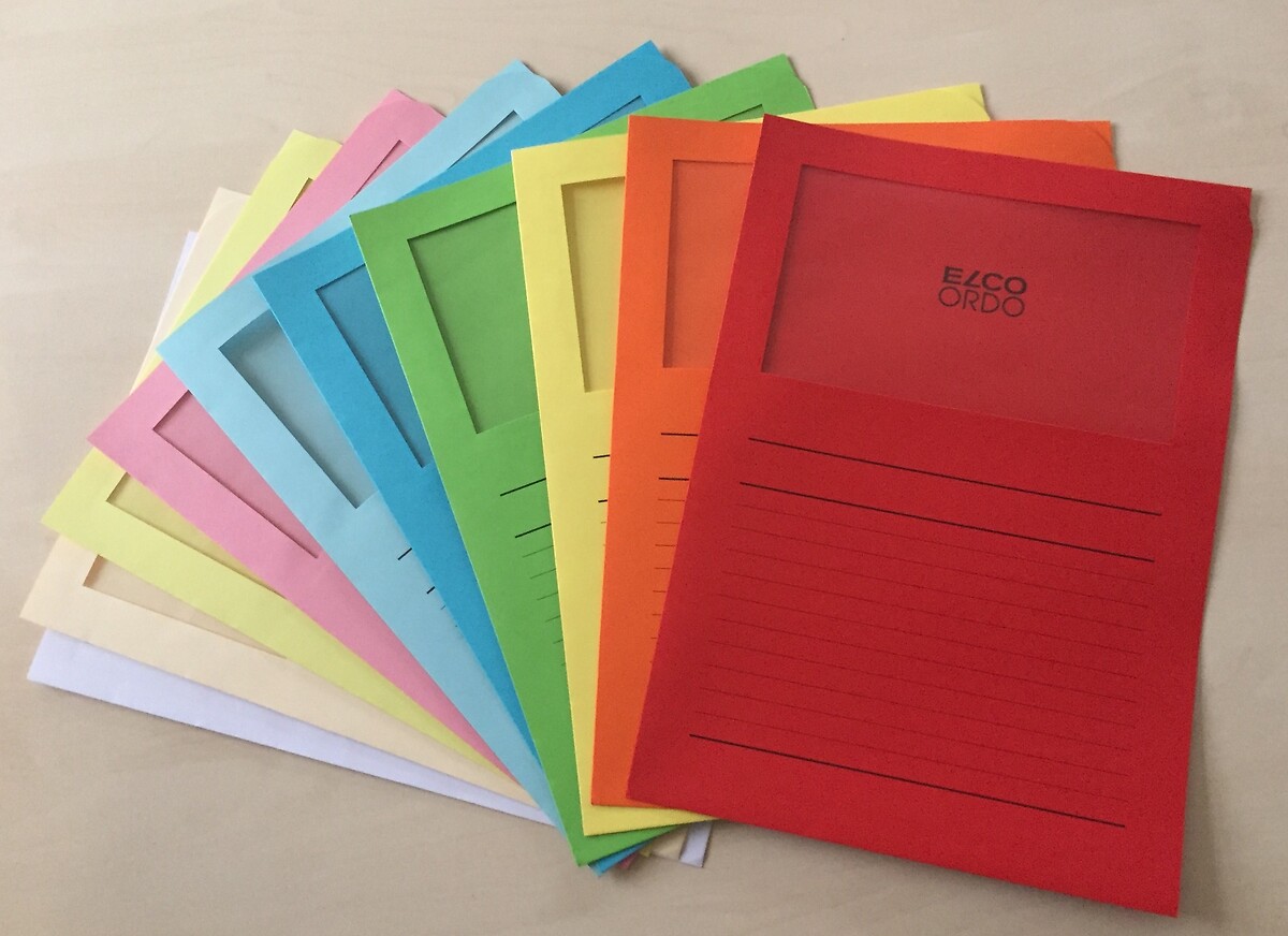 Transparantie : Een transparant venster, geรฏntegreerd in de omslag, maakt onmiddellijke identificatie van de inhoud van elke hoekmap mogelijk.