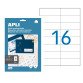 16 etiketten per blad. 10 A4 vellen. Formaat van 1 etiket 105 x 37 mm, rechte hoeken, permanente lijm.