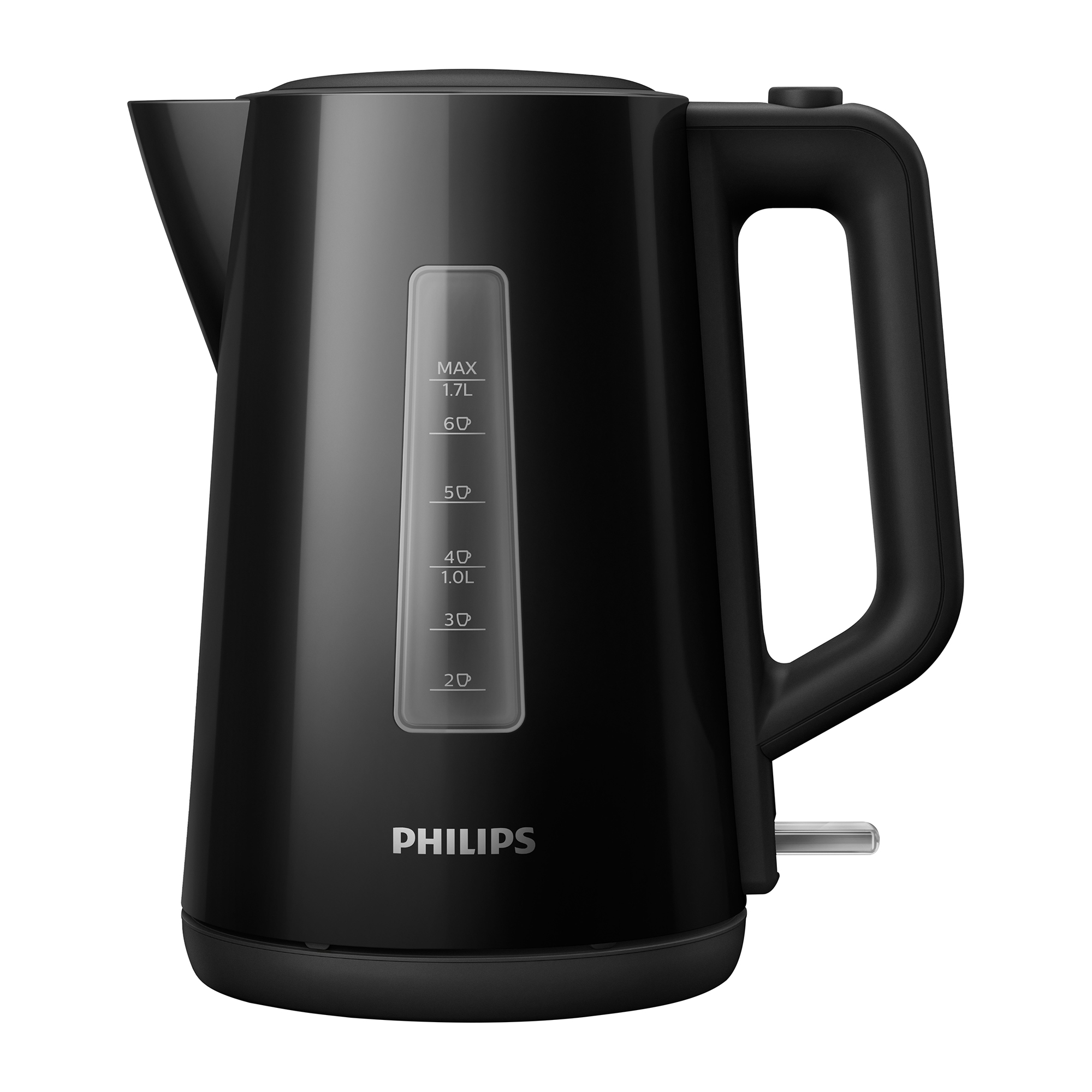 De nieuwe Philips-waterkoker van 1,7 liter met kunststof behuizing, automatisch deksel en indicator maakt het gemakkelijk om uw favoriete drankjes in een mum van tijd te bereiden.