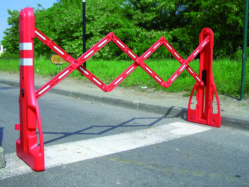 Accordeonhek van rood/wit polypropeen.
