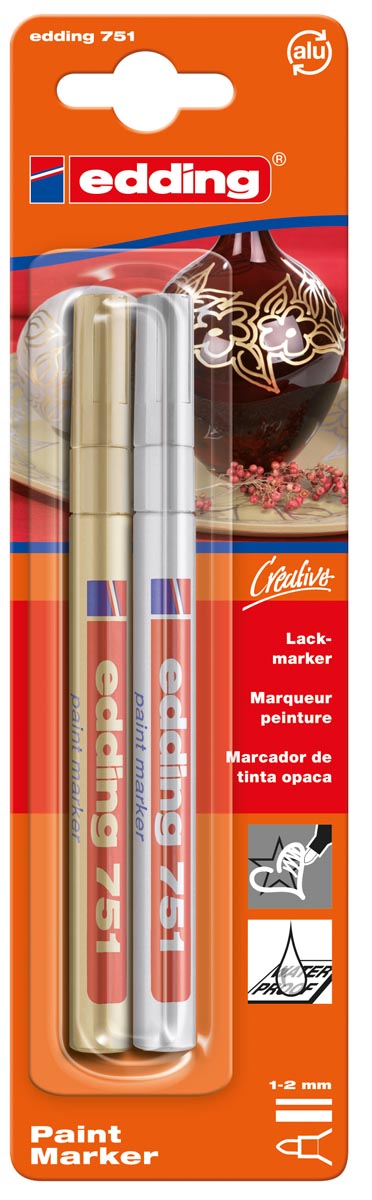 ProductinformatieLakmarker met ronde punt. Schrijfbreedte: 1 - 2 mm. Toepasbaar op bijna alle materialen zoals glas, plastic, hout en metaal. Permanente, reukarme, hittebestendige en lakachtige dekkende inkt. Voor gebruik goed schudden en pompen.