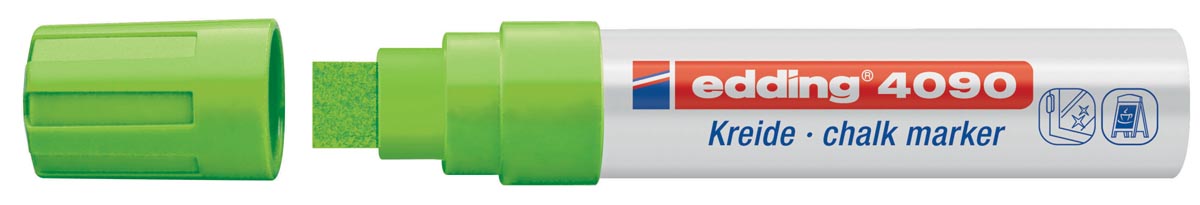 ProductinformatieBeitelvormige punt. Schrijfbreedte: 4 - 15 mm. Geurneutraal krijt op waterbasis. Voor het beschrijven van o.a. ramen en deuren. Met een vochtige doek te verwijderen van bijna alle niet-poreuze oppervlakken.