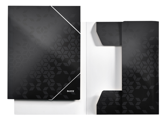 ProductinformatieKarton in PP-laminaat, glanzend, met 3 zijdelingse beschermflappen, met elastiek, capaciteit: 250 vellen,afmetingen: (B)241 x (H)310 mm.