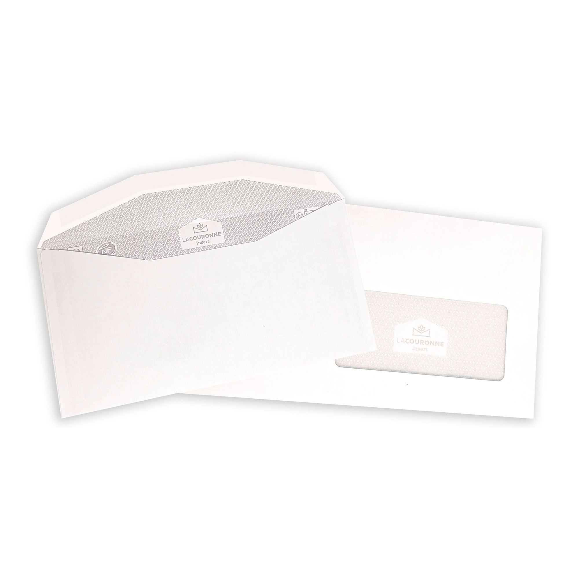 Wit velijnpapier 80 g. Recycleerbaar. Certificaat: NF Environnement. Formaat: 115 x 225 mm, met venster 45 x 100 mm. Sluiting via trapeziumvormige, gegomde flap. Compatibel met de apparaten van Bell Howell, Böwe, Kern 10, Pitney Bowes, Secap 2000/4000, Néopost. Doos met 1000 enveloppen. Kleur wit.
