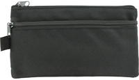 ProductinformatiePlatte etui, 2 compartimenten met ritssluiting, niet gevuld, van polyester, afmetingen: (L)210 x (H)110 mm.