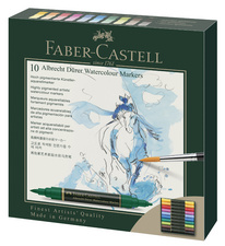 Verken de wereld van aquarel met de FABER-CASTELL aquarel marker ALBRECHT DÜRER, gepresenteerd in een etui van 10 stuks.