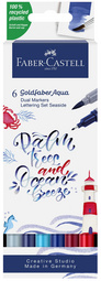 Aqua Dual-marker op waterbasis met twee punten, zachte en flexibele penseelpunt en fijne punt van 0,6 mm met metalen inzet, aquarelleerbaar, geurloos, pH-neutraal, inhoud: 6 markers.