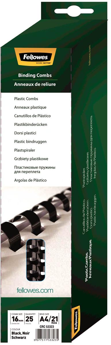 Fellowes bindruggen, pak van 25 stuks, 16 mm, zwart