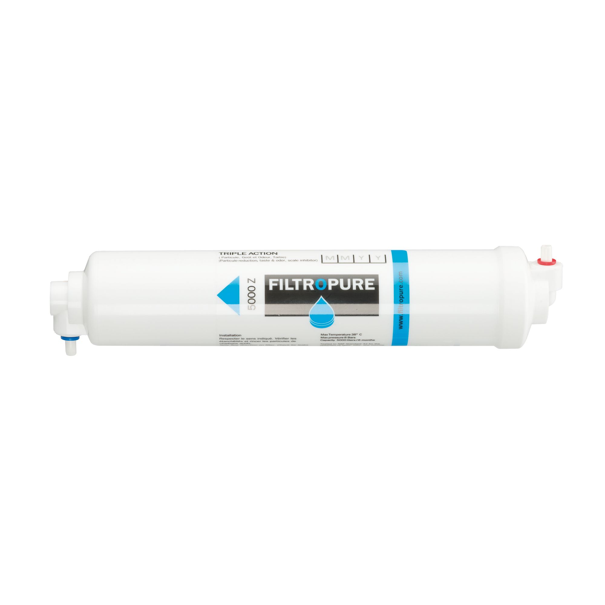 ProductinformatieFiltert tot 5000 l. Verwijdert de smaak en de geur. Doelftreffende actie tegen kalk. Filtert partikels tot 5 micron.