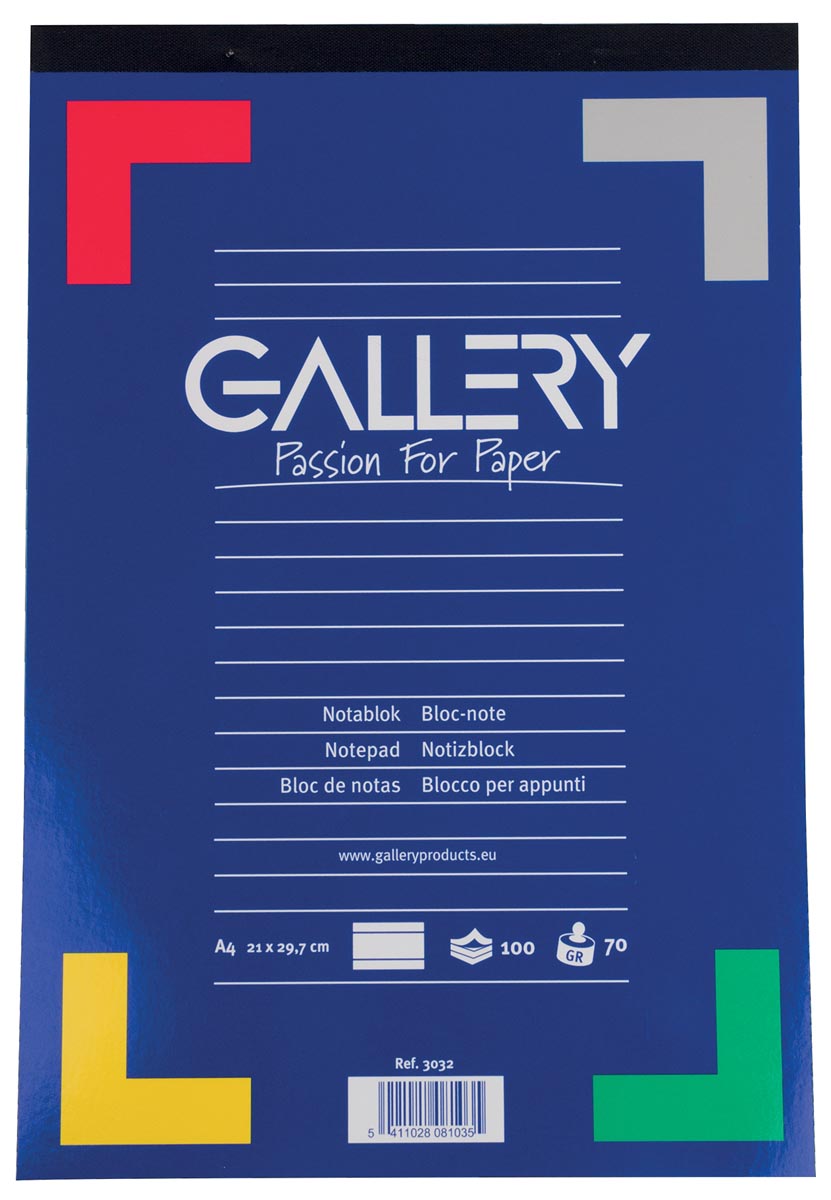 Gallery schrijfblok, ft A4, gelijnd, blok van 100 vel
