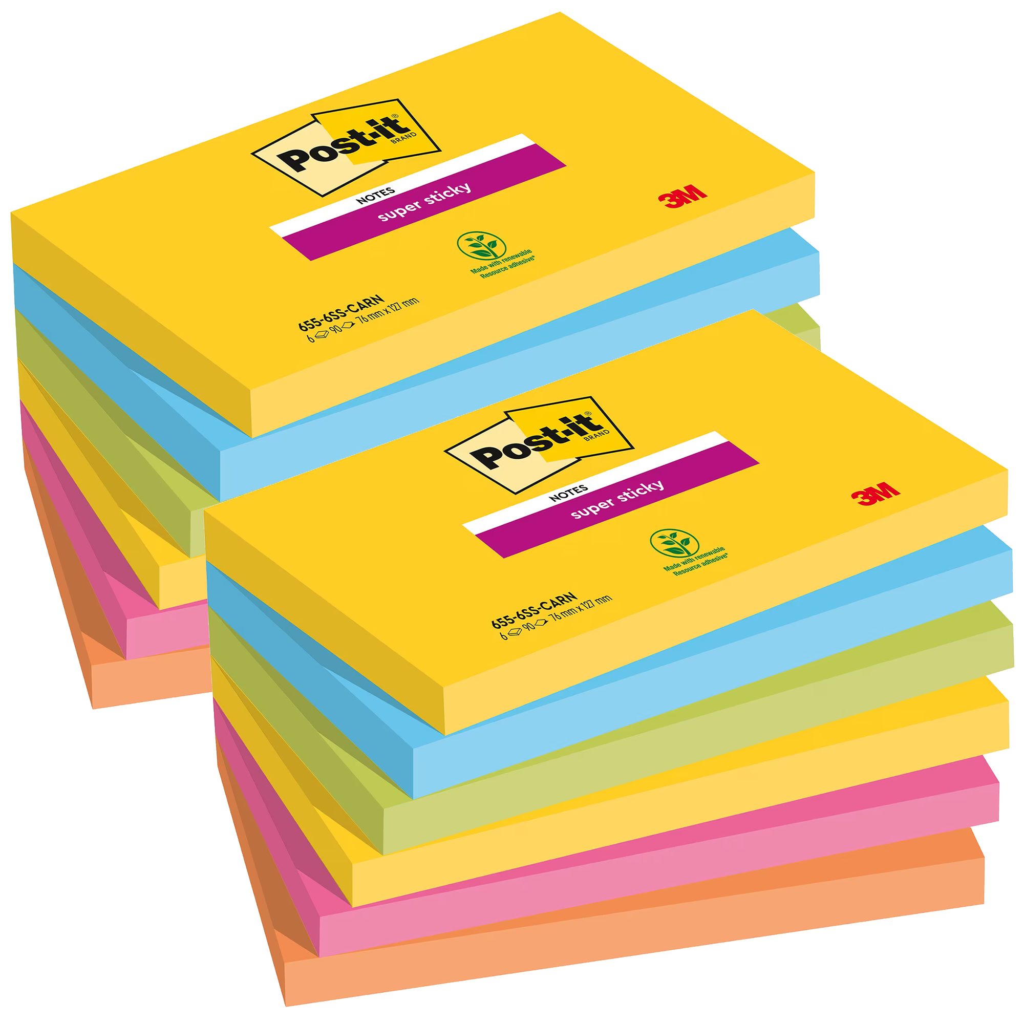 Noteer uw ideeën, maak een lijst van uw taken, schrijf een bericht op de kleurrijke Carnival Super Sticky Post-it notes.
