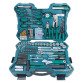 Inhoud: 9 schroevendraaiers, 13 boren, 65 stuks klein assortiment, 147 x bits, cutter met 10 x reservemesjes, spanningsmeter, rolbandmeter, 3 tangen, 31 doppen, 4 verlengingen, 2 T-grepen, 2 cardankoppelingen, 2 omkeerbare ratels, 2 bougiesleutels, hamer.