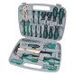 Inhoud: waterpomptang, combinatietang, telefoontang, hamer, 1/4' ratel, 4 werkplaatsschroevendraaiers, 5 x precisieschroevendraaiers, bitschroevendraaiergreep, 9 x haakse Torxsleutels, verlengstuk, 20 x bits, 10 x doppen, 2 schroevendraaiers.
