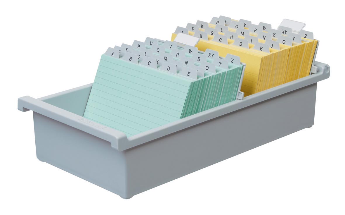 ProductinformatieUit kunststof. Capaciteit: 1.300 kaarten. Open model. Horizontaal. Geleverd met 2 tussenschotten. Kleur: grijs.