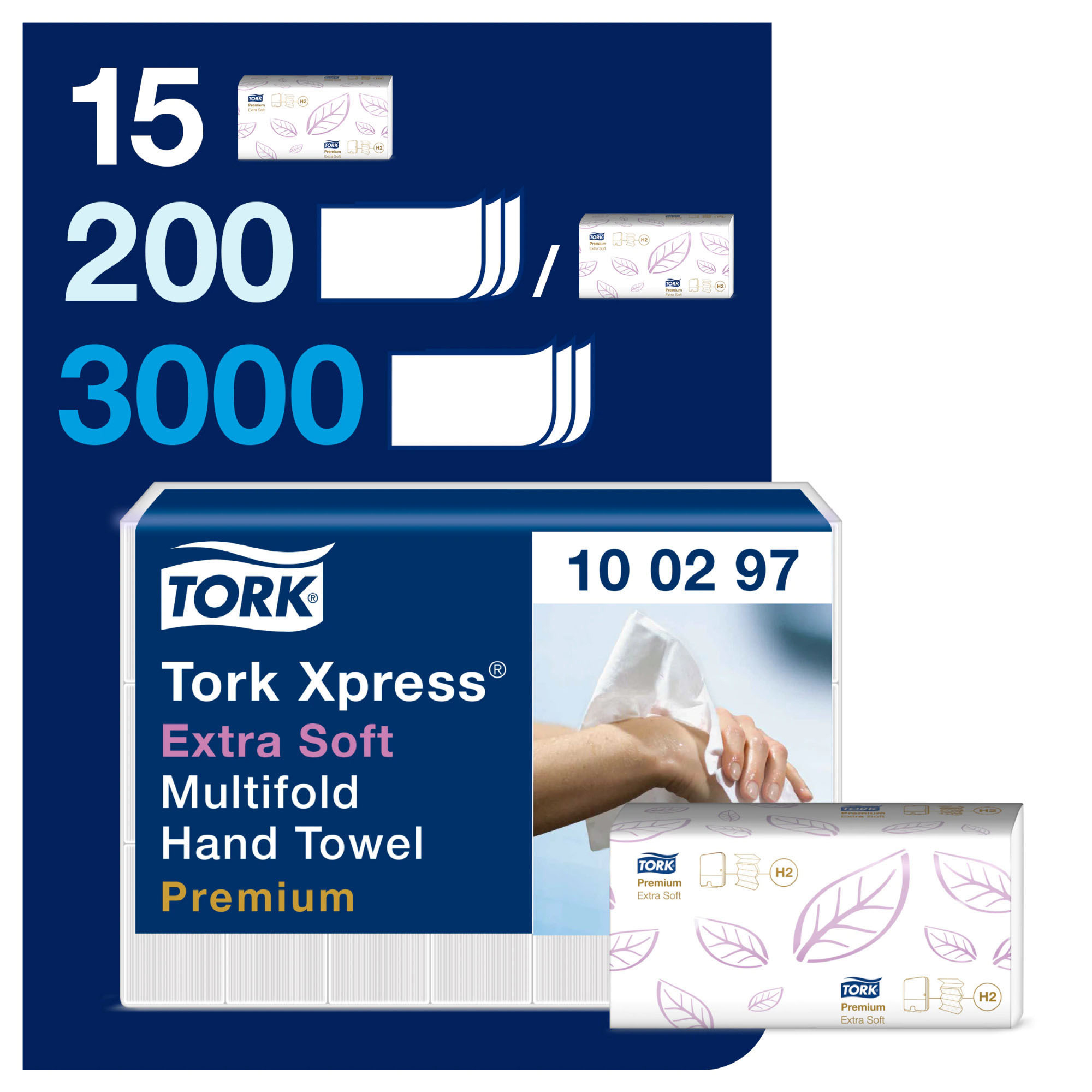 Extra zacht en zeer aangenaam om aan te raken, de gevouwen handdoeken Tork H2 Premium zijn perfect voor gemeenschappelijke sanitaire voorzieningen op kantoor, in restaurants of hotels.