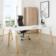 Robuuste platen van 25 mm dik spaanplaat met melamine coating en antireflecterende behandeling. Hoofdblad van het bureau met vooraf geboorde gaten: u kunt kiezen om een centrale top access toe te voegen en 2 ronde of vierkante afsluitdoppen (80 mm) (optioneel). 2 mm dikke ABS-randen passend bij het decor. Eenvoudig bijzetblad om aan het einde van het blad te bevestigen om een hoek te vormen. Witte metalen en massief houten poten. Versterkingsbalk over de hele lengte van het hoofdblad. Nivelleervoeten voor aanpassing aan oneffen vloeren.