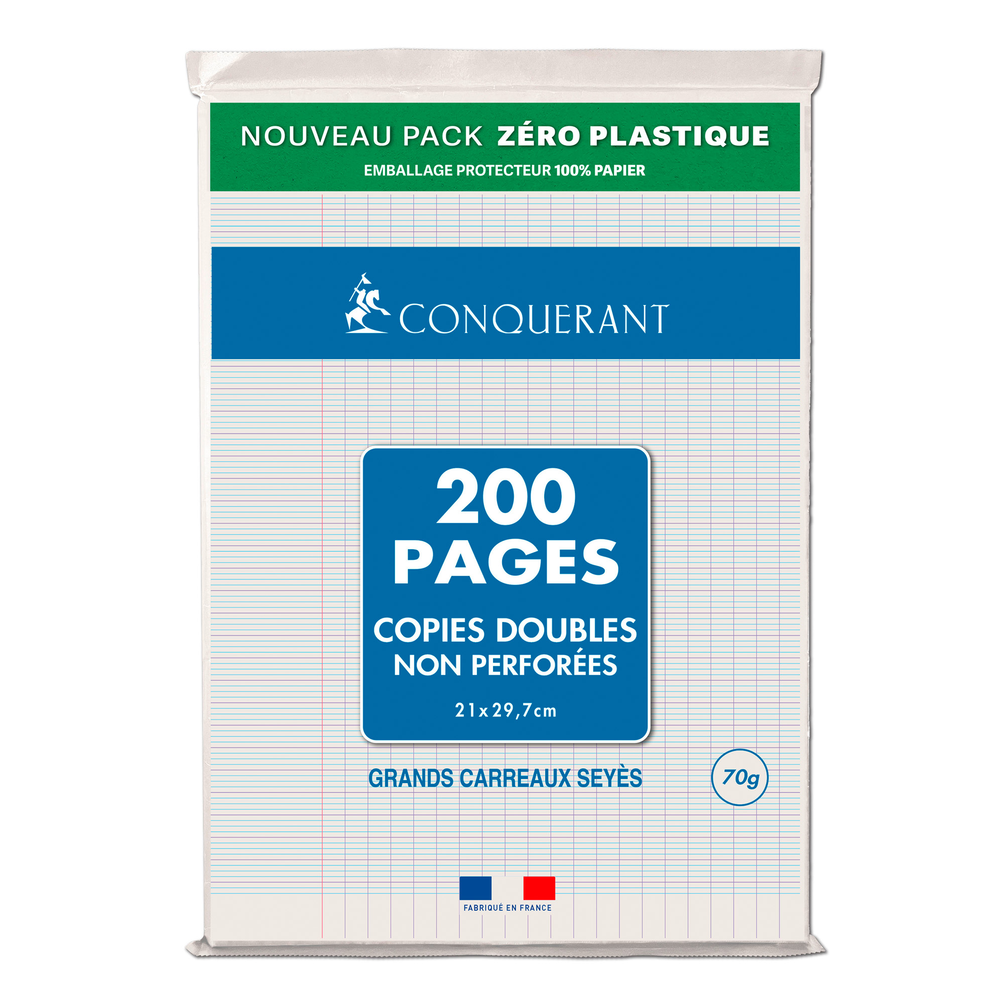 Voorgesteld in een hoesje met 200 dubbele kopieën, niet geperforeerd van Conquérant 7, ofwel 200 pagina's, in wit papier, 70 g.
