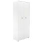 Gemelamineerde spaanplaat. Kleur: wit. 4 houten legplanken met een aanpasbare hoogte. Klapdeuren. Handvatten in verchroomd metaal. 1-puntslot (geleverd met 2 sleutels). Met beschermvoetjes. Afmetingen: H 217 x B 86 x D 45 cm. Nuttige afmetingen: B 82 x D 40 cm. Tot 10 hefboommappen of 9 archiefdozen per legplank. Scheidingswanden in notelaar zijn optioneel.