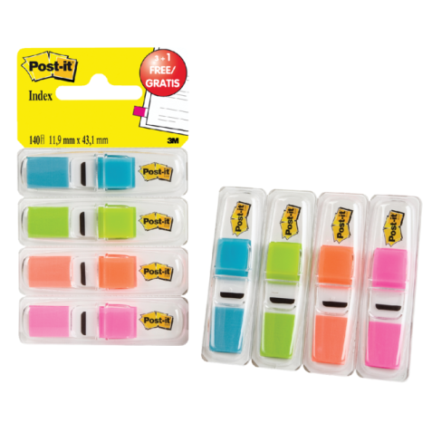 Indextabs 3M Post-it 6834, klein formaat, hemelsblauw/roze/groen/oranje