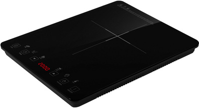 ProductinformatieInductiekookplaat met solo vitrokeramisch, 9 warmtestanden,touchbediening, timer van 3 uur, oververhittingsbeveiliging,2.000 W, eurostekker, afmetingen: (L)280 x (B)350 x (H)43 mm,kleur: zwart