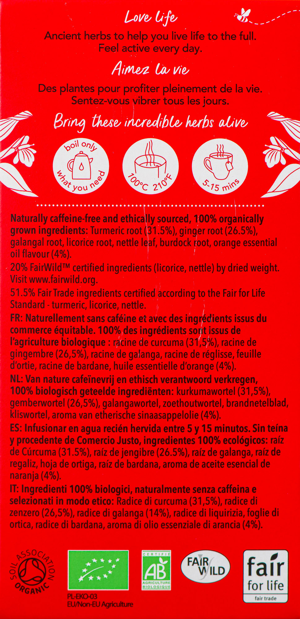 • Gemaakt met biologische laos, gember, zoethout, brandnetel, triphala en kurkuma
