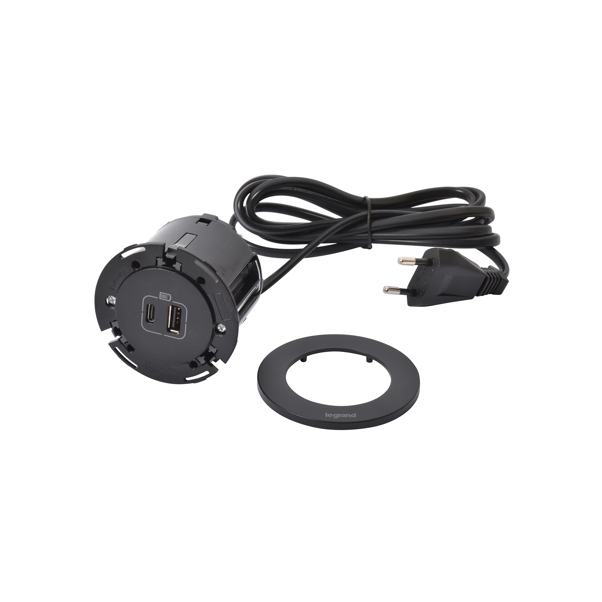 De Incara™ Disq 60-aansluiting is een compacte inbouwoplossing, uitgerust met een usb A-poort en een usb C-poort. Een ideale oplossing voor het elektrificeren van werkplekken, scheidingswanden of kleine gezellige ruimtes.
