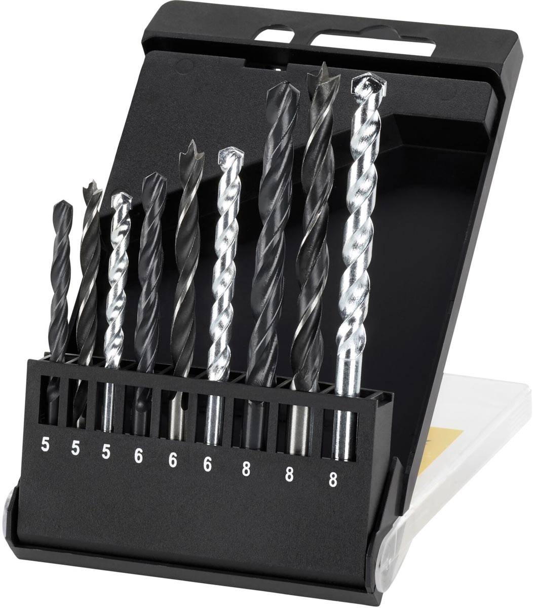 ProductinformatieSet boren mix voor hout, metaal en steen: - 3 metaalboren: diameter 5, 6 en 8 mm - 3 steenboren: diameter 5, 6 en 8 mm - 3 houtboren: diameter 5, 6 en 8 mm