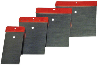 Productinformatie4 stuks, metalen mes, rode plastic handgreep,breedtes: 50 mm, 80 mm, 100 mm, 120 mm,inhoud: 4 messen.