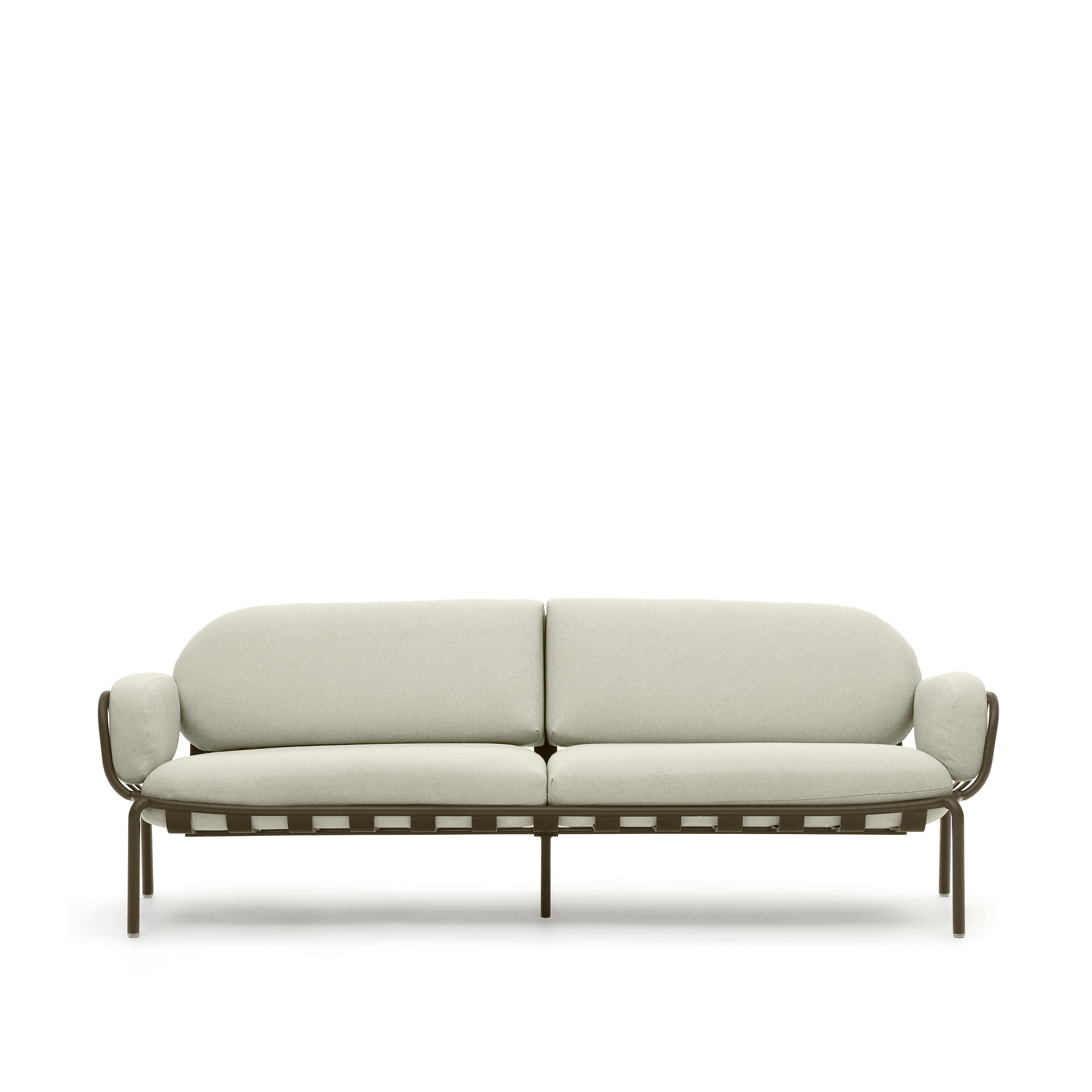 3-zitsbank met aluminium structuur, buisvormige en gebogen afwerking.