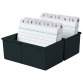 ProductinformatieHAN kaartenbak van kunststof met scharnierend deksel Voor het opbergen van systeemkaarten Capaciteit ca. 300 kaarten Leverbaar in A5, A6, A7-formaat Artikel wordt geleverd zonder inhoud. Systeemkaarten en tabstroken zijn los verkrijgbaar.