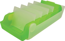 ProductinformatieTransparant, deksel: transparant wit, van polystyreen,afschuifbaar en verwijderbaar deksel, 5 flexibele compartimentenvoor ca. 600 kaarten, geschikt voor gelamineerde kaarten,met inscriptieveld, inclusief 100 fiches