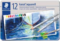 Dikte vulling: 3,0 mm, zeskantig, aquarelleerbaar, lichtbestendig, ook droog te gebruiken, stevige vulling, lengte: 175 mm, inhoud: 24 potloden in metalen etui assortiment van kleuren geel, rood, bordeauxrood, blauw, abrikoos, oranje, groen, geelgroen, roodpaars, huidskleur, bruin van-Dijck, zwart, wit, lichtgeel, oker, magenta, roze, kobaltblauw, cyaan, watergroen, licht olijfgroen, paars, gebrande sienna en lichtgrijs.