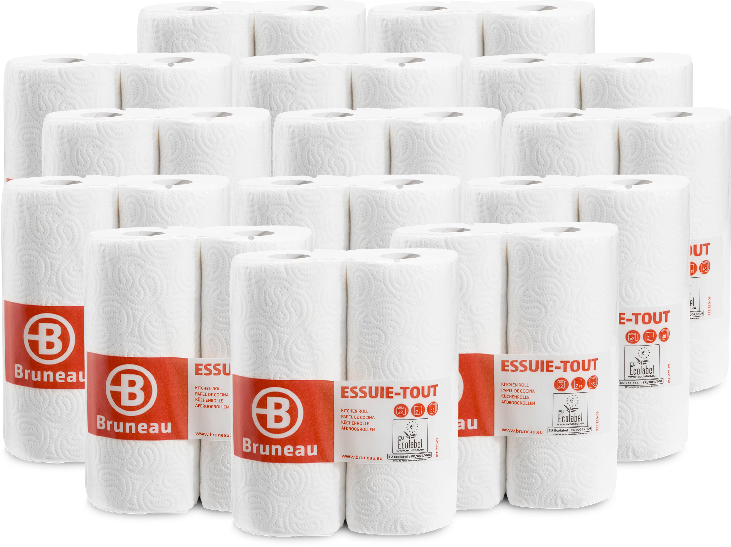 Pak van 28 rollen (14 x 2 rollen) Bruneau huishoudelijk keukenpapier, ultra absorberend.