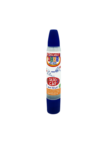 * Collall Kinderlijm 30 ml in een duo-dop lijmpen; één kant een fijne doseerdop, de andere kant is bedoeld voor grotere lijmvlakken. * De transparante lijm is transparant van kleur en gemakkelijk uitwasbaar en kan worden toegepast voor de verlijming van papier, karton, kurk, hout, piepschuim en lichte kunststoffen. * Het product bevat bitterstof en is geschikt voor kinderen vanaf 3 jaar.