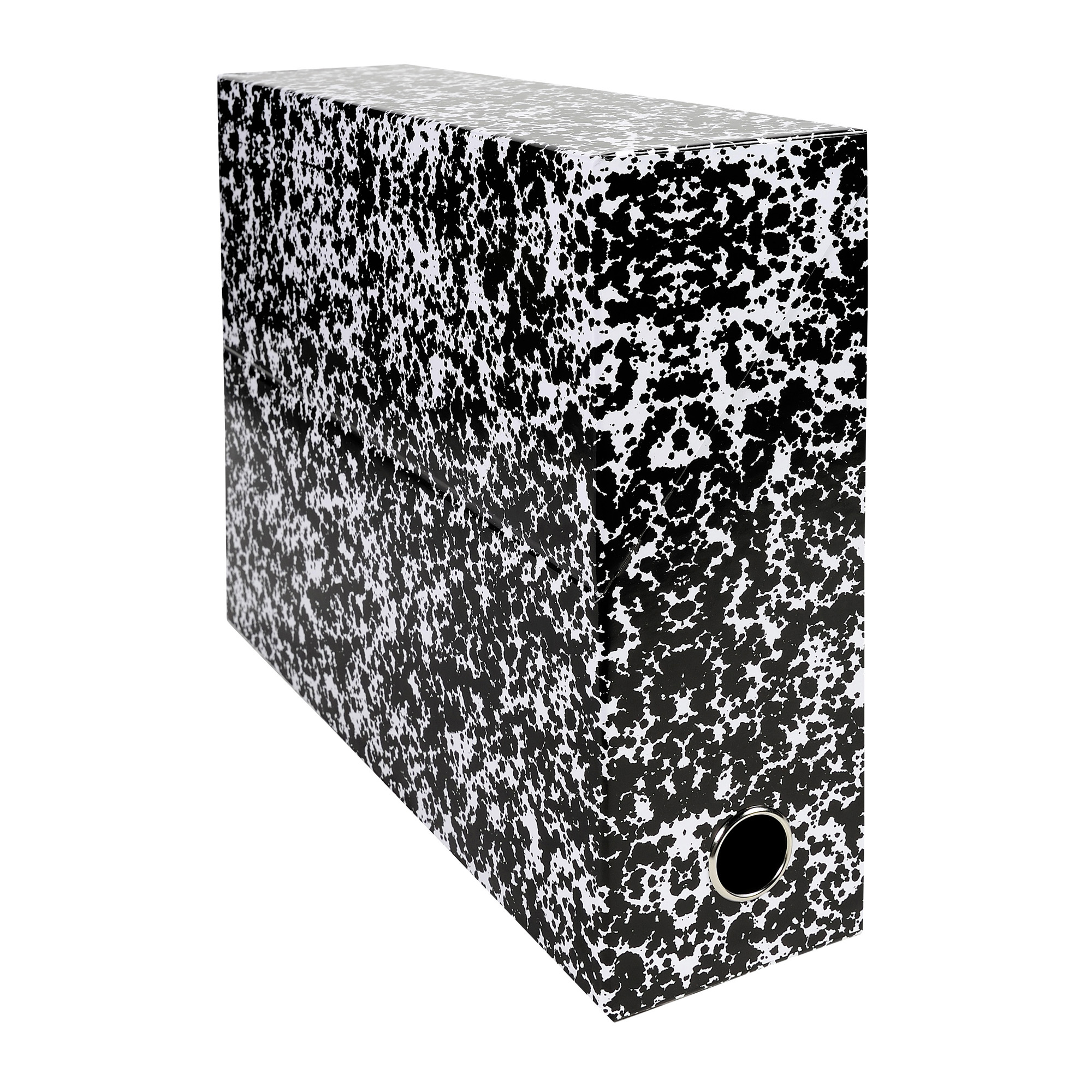 Met deze klasseerdozen met gemarmerd uitzicht kan u zeer handig uw dossiers klasseren. Dit elegante model werd vervaardigd uit sterk karton 15/10e , FSC gecertificeerd en bedekt met bedrukt vernis papier. Reeds inééngestoken, klaar om uw documenten op te slaan en te beschermen. Met een diepte van 9 cm, kan u er heel wat dossiers in kwijt.