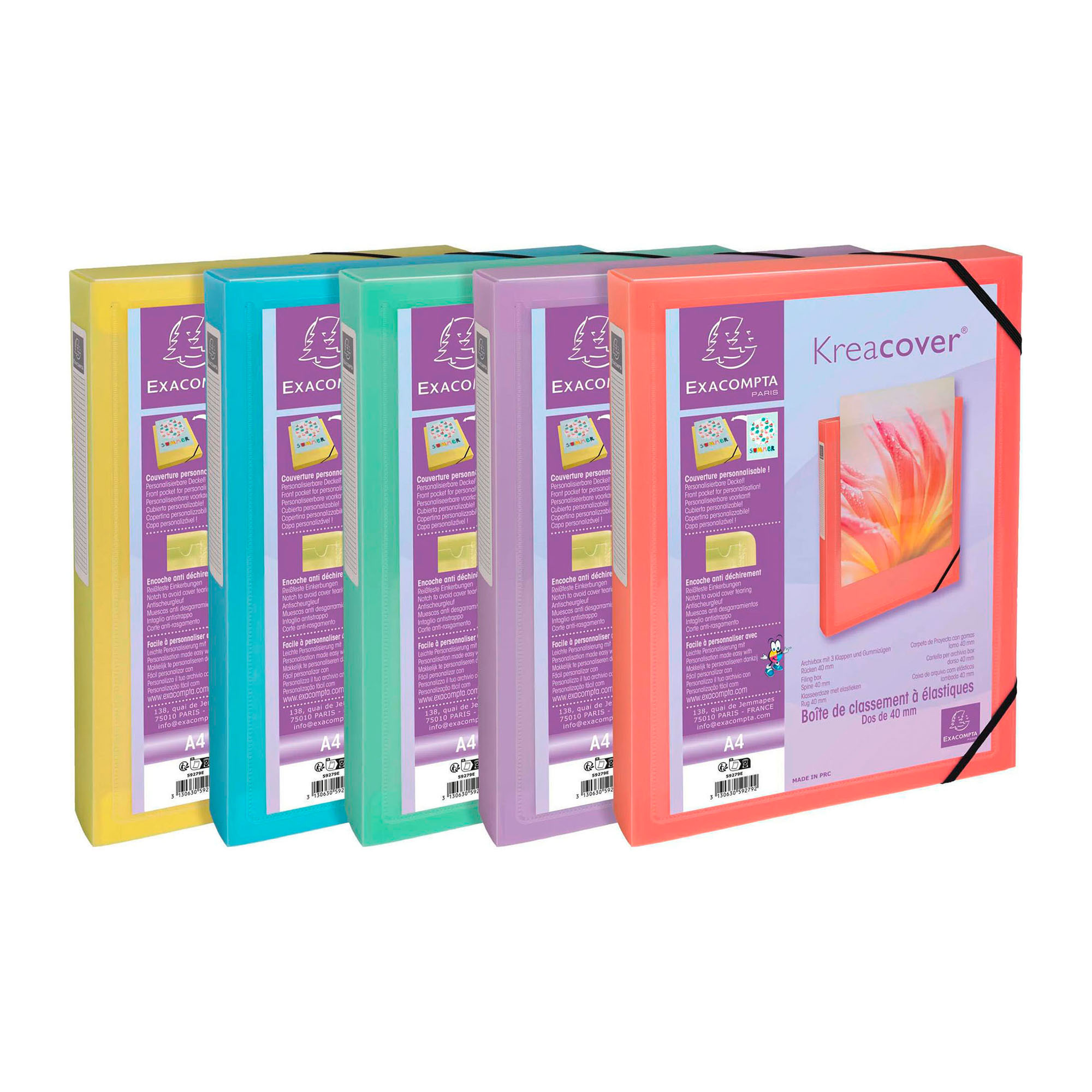 Klasseerdoos plastic personaliseerbaar Exacompta KREACOVER - rug 4 cm assortiment pastelkleuren