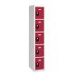 Wenst u de inrichting van uw lokaal te optimaliseren? Kies dan deze kolomkast met 5 vakken. Dit model is geschikt voor de opberging van diverse zaken. De robuuste kast is gemaakt van staalplaat, dikte 6/10e, met een epoxygelakte afwerking, bestand tegen schokken en krassen. Om de inhoud of de eigenaar van de locker te benoemen is deze voorzien van een etikethouder in antracietkleurig plastic. Voor een goede beveiliging is de deur uitgerust met een slot voor een hangslot en een omega-profiel over de volledige hoogte. De deur is beschikbaar in drie kleuren: blauw, rood, antracietgrijs.