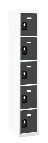 Wenst u de inrichting van uw lokaal te optimaliseren? Kies dan deze kolomkast met 5 vakken. Dit model is geschikt voor de opberging van diverse zaken. De robuuste kast is gemaakt van staalplaat, dikte 6/10e, met een epoxygelakte afwerking, bestand tegen schokken en krassen. Om de inhoud of de eigenaar van de locker te benoemen is deze voorzien van een etikethouder in antracietkleurig plastic. Voor een goede beveiliging is de deur uitgerust met een slot voor een hangslot en een omega-profiel over de volledige hoogte. De deur is beschikbaar in drie kleuren: blauw, rood, antracietgrijs.