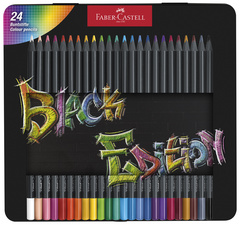 ProductinformatieDriehoekig, zwart hout, superzacht lood voor fantastischeeffecten zelfs op donker papier, onbreekbaar lood, extra zachte kleur, looddikte: 3,3 mm, inhoud: 24 potloden in metalen etui.