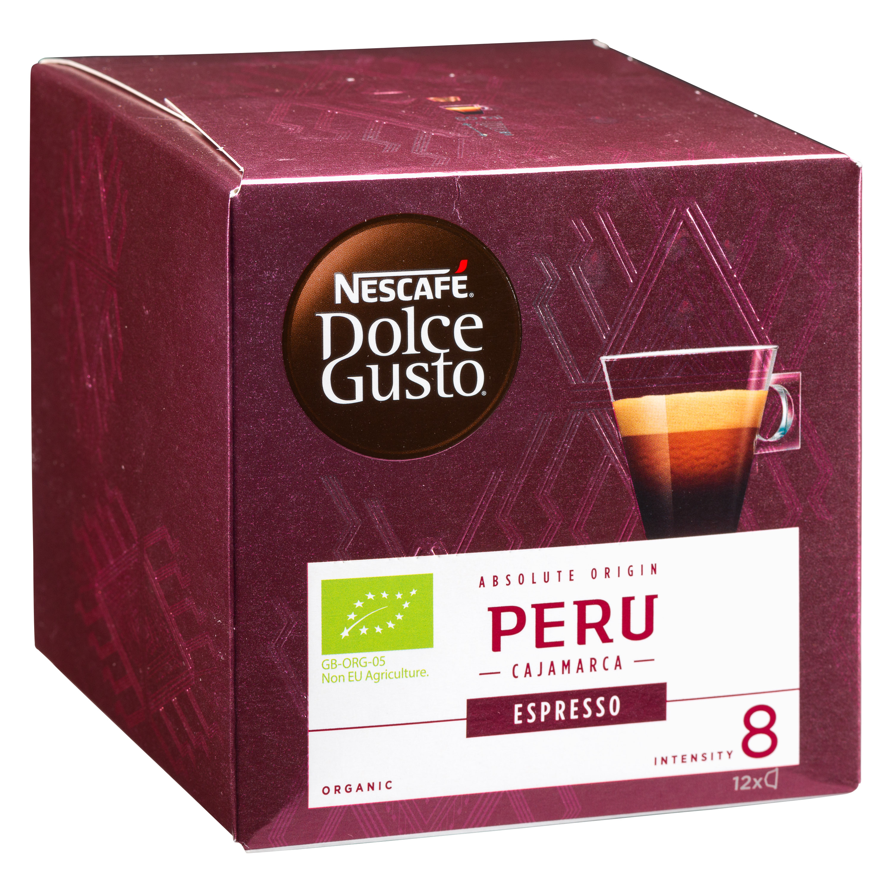 Ontdek de nieuwe capsules van Espresso Peru uit het gamma ABSOLUTE ORIGIN BIO van NESCAFÉ® Dolce Gusto®, een 100% biologische Arabica, waarbij de koffiebonen afkomstig zijn van de verfrissende hoogvlaktes in de Peruviaanse provincie Cajamarca.