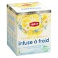 Een koude infusie waarbij de zure smaak van citroen vermengd wordt met de subtiele noten van kamille. U kunt het perfect overal meenemen om het water van uw veldfles te parfumeren en de ganse dag lang van een heerlijke smaak te genieten.