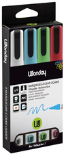 ProductinformatieVloeibare krijtstift, stofvrij, reinigbaar meteen vochtige doek, lijndikte: 4,0 mmassorti in de kleuren: wit, blauw, rood en groeninhoud: 4 stiften, voor alle gladde en niet-poreuze ondergronden.