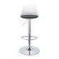 Materiaal: kuip in polypropyleen. Zitting in polyurethaan. Tulpvormig onderstel in verchroomd metaal met halfcirkelvormige voetensteun.