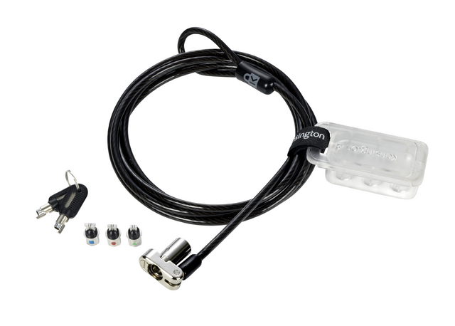 Het Universal 3-in-1 Keyed Laptop Lock past op alle beveiligingsuitsparingen van laptops (Standaard, Nano en Wedge-Shaped) om uw vergrendelingsoplossing toekomstbestendig te maken. De slotuiteinden kunnen eenvoudig verwisseld worden, terwijl een koord ongebruikte slotuiteinden bij de hand houdt. Een algemeen sleutelsysteem van 5 mm, gepatenteerde Hidden Pin™-technologie en een met koolstof versterkte staalkabel bieden een uitstekende beveiliging tegen pogingen tot lockpicking en diefstal. Het draaiende slothoofd kan flexibel bewegen zodat u de sleutel er makkelijk in kunt steken. Aanvullende kenmerken zijn onder meer Register & Retrieve™ voor het snel, veilig en eenvoudig vervangen van sleutels en vijf jaar garantie, gedekt door Kensington, uitvinder en wereldwijde marktleider op het gebied van beveiligingssloten voor laptops. Alle sloten van Kensington zijn gecontroleerd en getest op sterkte, duurzaamheid en mechanische bestendigheid. *Producteigenschappen; * Eén slot voor elke uitsparing: past op Standaard, Nano of Wedge-Shaped beveiligingsuitsparingen op laptops, ongeacht het merk of de generatie, voor een toekomstbestendige vergrendelingsoplossing. De slotuiteinden kunnen eenvoudig verwisseld worden, terwijl een koord ongebruikte slotuiteinden bij de hand houdt. * Een 5 mm sleutelsysteem is standaard voor de nieuwste sloten van Kensington, dus u hoeft slechts één sleutelsysteem te beheren. Het kleinere sleutelgat beveiligt beter tegen lockpicking. * De gepatenteerde Hidden Pin™-technologie tegen lockpicking is bestand tegen manipulatie, dus u hoeft zich geen zorgen te maken. 1,8m kabel met plastic omhulsel is bestand tegen snijden en voorkomt diefstal. * Een speciaal draaiend scharnier op het slothoofd biedt flexibele beweging zodat u de sleutel er makkelijk in kunt steken. * Met Register & Retrieve™, het online sleutelregistratieprogramma van Kensington, kunnen sleutels snel, veilig en gratis worden vervangen in geval van verlies of diefstal. * Kensington-sloten zijn gecontroleerd en getest. Elk slot is minutieus gemaakt zodat het aan de strenge industrienormen voor kracht, duurzaamheid en mechanische bestendigheid voldoet of deze overstijgt. * Door de garantie van vijf jaar weet u zeker dat u kunt rekenen op Kensington, uitvinder en wereldwijde marktleider op het gebied van beveiligingssloten voor laptops.