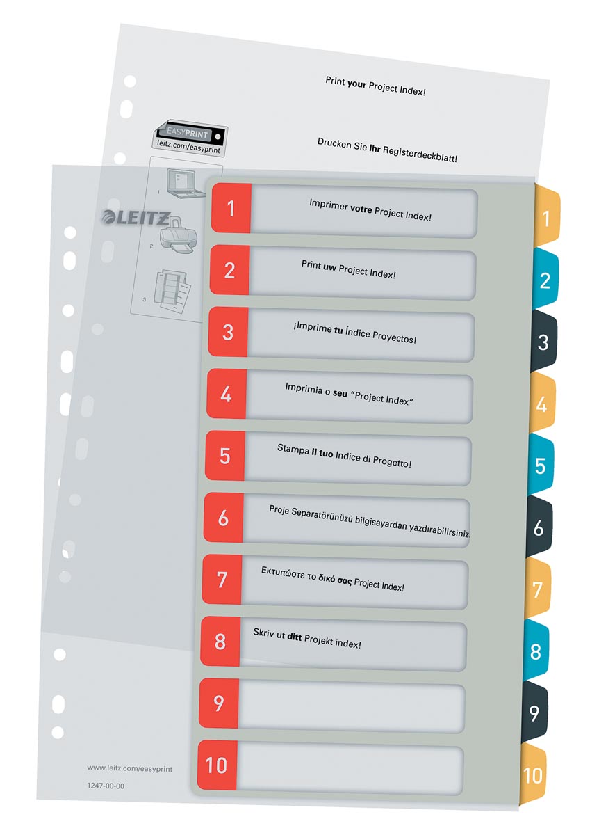 ProductinformatieFt A4 maxi Uit gekleurde PP van 300 micron in Cosy kleuren Indexvel personaliseerbaar via www.leitz.com/easyprint 11-gaatsperforatie
